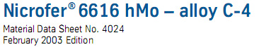 TKL-VDM Trademark:Nicrofer 6616 hMo