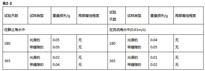 (2)Inconel625抗腐蚀性能:金具有良好的耐海水魔蚀性能,见表2 2。合金还耐各种盐类溶液的魔蚀。此外.还有良好的耐硝酸及磷酸腐蚀的能力,对加热至沸点以下的盐酸和低浓度的硫酸腐蚀也有相当的抗力。