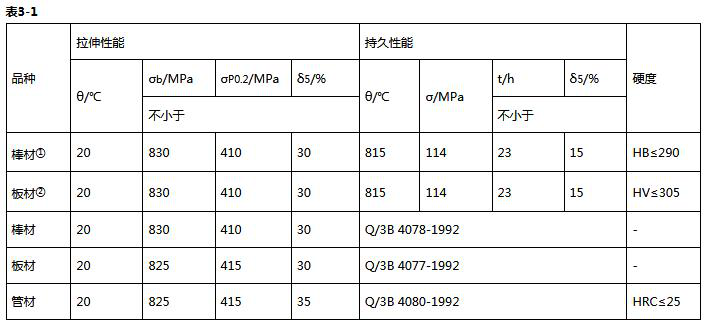 4.热处理制度:棒材:950~ 1030°C ,空泠或水冷;或1090~ 1200 ,空冷或水冷固落处理。板材: 950~ 1030°C .空泠;或1090~ 1200°C空冷。管材:推荐退火温度: 960~ 1030°C ,空冷或水冷。
