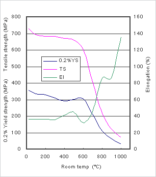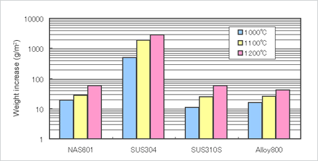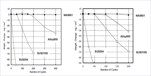 对反复氧化环境的耐氧化特性性优于SUS 310S、Alloy800。*适合用在反复加热、冷却的环境。