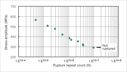 下图为UNS N06601  1.5mmt材在室温下的疲劳性能的一个示例。供试验的材料为研磨表面样品,0.2%屈服应力459MPa,抗拉强度777MPa,拉伸率36%。